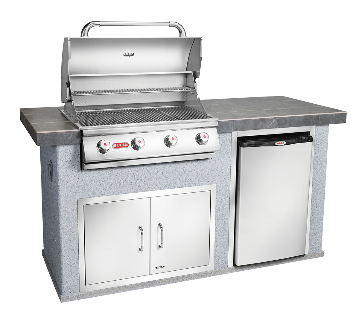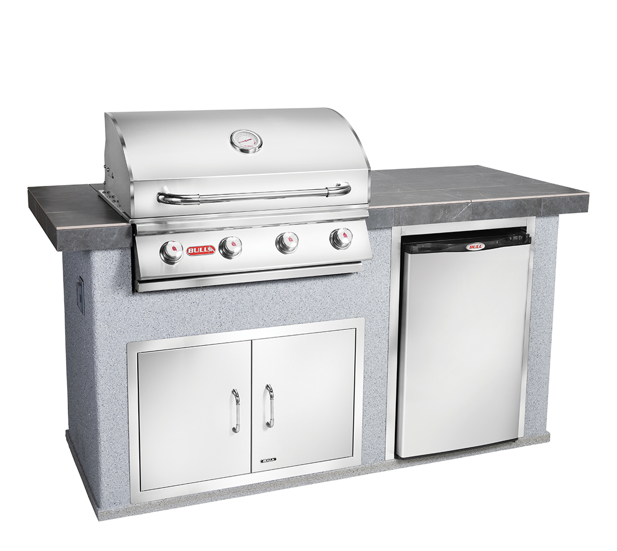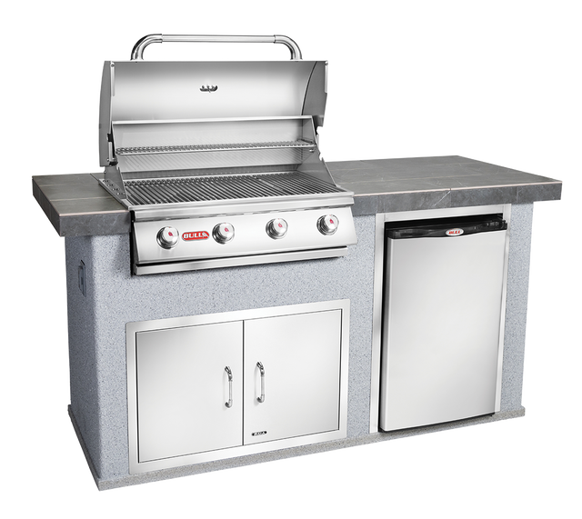 The Power Q Outdoor Island Kitchen is a wonderful addition to any smaller backyard or patio for the ultimate grill master. It comes standard with the Angus Grill Head, a Premium Outdoor Rated Refrigerator, and the Double Door with Towel Rack.