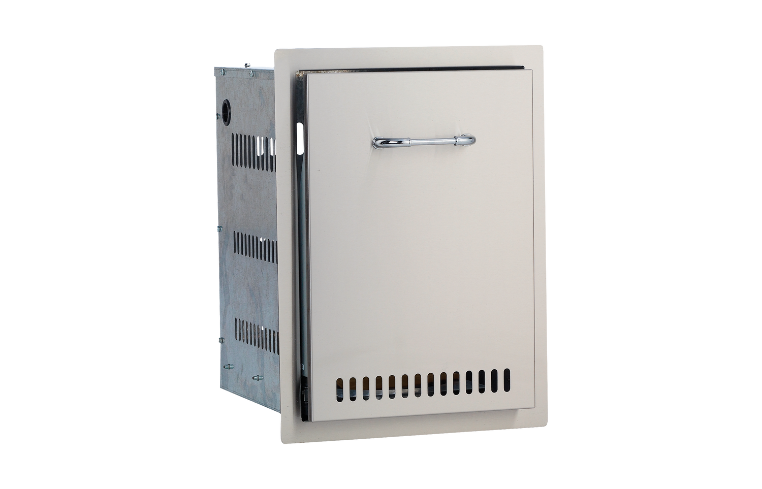 The Gas Tank Drawer has a 304 Stainless Steel Construction, is built to hold a 10 kg Gas Tank, and includes built-in venting & slide-out design.
